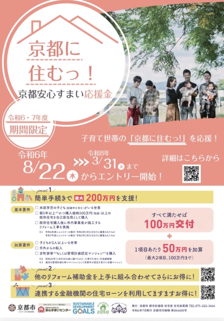 京都市内で住宅購入を検討している方(チラシの条件に該当される方)はぜひお早めにご相談ください。